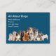 Dog Training und Gehorsam Services Business-Card-Design Vorlage erstellt mit einer Grafik von einer Vielzahl von Hunderassen und eine Zwei-Seiten-Stil in einer günstigen Visitenkarte können Sie online anpassen. Entworfen für einen Hunde Trainer, Gehorsam Schule oder Hundezwinger.
