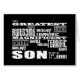 Dieses Geschenk des angesagten, ursprünglichen Designers ist kundengerecht: addieren Sie Ihren eigenen Text, Mitteilungen, Fotografien, Grafiken und Bilder, um Ihr eigenes einzigartiges Produkt zu entwerfen; das einer netten Modeaussage, zum Ihrer eigenen persönlichen Richtung der Art vorzuführen; oder ein personalisiertes Geschenk, zum zu geben dem besten angesagtsten und coolsten Sohn in der Welt.