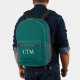 Der aquamarine Sleek-Rucksack enthält Ihr Monogramm in einem coolen weißen Schriftart. Fügen Sie Ihre Initialen in der Sidebar hinzu.