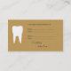 Elegantes businescard mit einem weißen Logo von Zähne auf carboard Vintagem Hintergrund. Auf der Rückseite finden Sie einen netten Abschnitt für Ihre geduldigen Verabredungen. Sehen Sie unseren Speicher für Geschenke und Kleid der zahnmedizinischen Praxis für den Zahnarzt, den Zahnarzthelfer und den Zahnarzthelfer. Finden Sie vergnügt lustige Zahnarzt-Spaß-Tassen, -Schürzen und -t-Shirts! Plus, tragen wir auch zahnmedizinische Spaßmagneten und -knöpfe, um weg zu tragen, anzuzeigen oder zu geben!