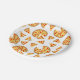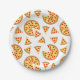 Coole und lustige Pizzaschnitte auf weißem Papier Tellern zum Geburtstag Pizza Party. Juicy Vektor Pizza mit knuspriger Kruste, Käse, Salami, Champignon Pilze, Oliven und ein Sprinkle Oregano gemacht.