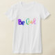 Sei coole Wörter, die Aquarell-Handling zeichnend Design-T - Shirt. Künstlerischer einzigartiger Be cool Text Buchstaben Handzeichnung Design T - Shirt. Rainbow farbenfroh handschriftlich Sei cooler Phrasendrei. Motivierend, fröhlicher Handling Design Regenbogenfarbe Text T - Shirt.