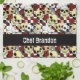 Cooles Küchentuch mit Skulpturen mit Koch-Hüten mit rote Rosen und Küchenmesser auf schwarz-weißem Hintergrund. Das perfekte Geschenk für Koch und Zuhause-Köche im Restaurant