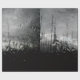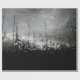 PLdesign's Abstraktes Schwarz-Weiß-Foto aus Regentropfen an einem grauen, regnerischen Tag mit Blick auf beschädigte Bäume.