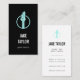 Einzigartige vertikale Visitenkarten für Gitarreninstruktoren, Musiklehrer, Gitarrenunterricht, Musiker oder Gitarrenspieler, Stimmdarsteller oder -schauspielerinnen, Stimmkünstler, Gesangstalent und Tonaufnahmen-Profis verfügen über einen elektrischen Gitarren-Headstock im hellen Aqua auf schwarzem Hintergrund, mit zwei Zeilen individuellem Text in weißer Schrift. Passen Sie die Rückseite mit Ihren vollständigen Kontaktdaten an, die unter einer kleineren, passenden Headstock-Abbildung angezeigt werden. Ob klassisch, akustisch, elektrisch oder Bass - diese modernen und beruflichen Visitenkarten sind die ideale Lösung, um Kunden zu gewinnen und Ihr Geschäft zu markieren!