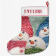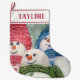 Ein cooler Schnee-Familien-WeihnachtsStrumpf, den Sie mit Ihrem eigenen Namen besonders anfertigen können. 3 Schneemänner, die Schals und Hauptgang in den Farben von Grünem, von Rotem und im Blau mit dem Zusammenbringen tragen, knöpft hinunter ihre vorderen Bäuche