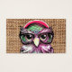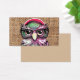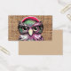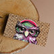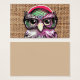 Eine cool rosa lila Tätowierung lustige Eule mit Brille. Ein einzigartiges Design auf braunem Jute-Textur-Hintergrund. Die perfekte Spaß Geschenkidee für jeden Anlass.