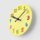 Adorable gelbe Uhr Gesicht mit "Tieren" aus Zahlen mit Augen, die Ihre Kinder erfreuen werden. Ideal für ein Kinderzimmer oder ein Spielzimmer.