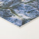 Personalisieren Sie Ihre Eingabe und Ihren Namen. Entspannen Sie sich stilvoll mit maßgeschneiderter Yogamattel. Makrofoto von schönen blauen grauen Morgenwasser fällt auf ein Blatt.