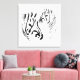 Einzigartige Wildkunst mit zwei geschwungenen Zebraköpfen, die aus meiner originalen Glasmalerei entstanden sind. Die Hintergrundfarbe dieses monochromen Tierdrucks kann angepasst werden. ©Annabel Potter