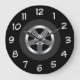 Cooles Thema Männer-Wandleuchte mit Autoreifen-Grafik entworfen und fett lesbar Uhren-Nummern in einer Wanduhr geeignet für ein Büro von Typ, Zuhause-Büro oder eine Menschenhöhle.