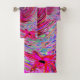 Cooler Abstrakter Retro Hot Pink und Roter Blütenw Badhandtuch Set