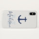 Elegantes und praktisches iPhone-Gehäuse mit marineblau Ankerdesign bedruckt und mit Ihrem Namen und Initial dekoriert.