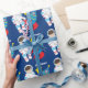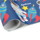 Cooles, individuelles Weltraumverpackungspapier für ein phantastisches Kind, das Raketenschiffe und Planeten befördert. Fügen Sie Ihren Kindern den Namen für einen Jungen hinzu, der gerne Astronauten neben dem Raumschiff und niedlichen blauen Geschenken schwimmt.