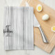 Personalisieren Sie mit Monogramm Küchendekoration mit Ihrem eigenen Vor- und Namen. Foto aus Bambusholz in eleganter Schwarz-Weiß-Textur.