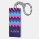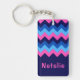 Cooler Blue Pink Zickzack Monogram Rectangle Schlü Schlüsselanhänger