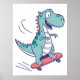 Cooler Cartoon T-Rex auf Skateboard Poster