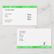 Helle, aber beruhigende Grüntöne verleihen sich dem Coolen Clover Patch Farbschema an den Rändern jeder personalisierten Visitenkarte. HINWEISE: Vor- und Nachname, Beruf (bis zu 2 Zeilen), Firmenname (bis zu 2 Zeilen) und Logo (MUSS vor Hintergrund sichtbar sein). Ausrichtung Set auf Fit.) auf der Vorderseite. Vollständige Adresse (bis zu 2 Zeilen); Stadt; Staat/Provinz; Zip; Land auf der Rückseite. Geben Sie Website und Telefonnummer an.