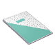 Cool doodle Farbe Block 90er Jahre Muster, Notebook. Das Notebook verfügt über abstrakte, graue Doodle-Punkte mit aquamarinem diagonalen Farbblock und eine Textzeile aus Single-Vorlagen für Namen oder anderen Text auf aquamarinem Etikett.