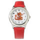 Kinderuhr aus Edelstahl mit rotem Lederarmband