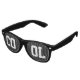 Coole schwarze Retro-Sonnenbrille mit fett weißem Text. Große Sommer- oder Party-Brille für jedermann. Unisex Design für Männer und Frauen. Geeignet für Kinder und Erwachsene.