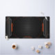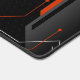 Schwarz-Orange-Metallic-Textur, cooler, moderner geometrischer Spielhintergrund mit grünen Akzenten. Benutzerdefiniertes optionales orangefarbenes Monogramm.