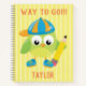Eine coole grüne Eule, auf einem gelb gestreiften Hintergrund, die Oberseite dieses Notebooks ist mit "Way to Go" in orangen Buchstaben geschrieben. Der Name Ihres Kindes ist am Ende Ihres Designs geschrieben. Kaufen Sie noch heute Ihre! Schälkunstwerk erstellt von: Prettygrafik design (https://www.etsy.com/shop/Prettygrafikdesign) Striped Artwork: AMBillustrations http://www.etsy.com/shop/AMBillustrations/