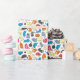 Dieses lustige Verpackungspapier bietet verschiedene Cartoon Hipster Katzen in mehreren Farben auf weißem Hintergrund.