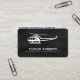© Sunny Mars Designs. Chopper Silhouette Helicopter Pilot Business Cards Vorlage - Schwarzweiß-Visitenkarten mit schwarz-weißer Silhouette auf coolem Grunge-Hintergrund.