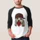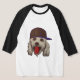 Ein T - Shirtdruck eines handgemachten Zeichnens eines glücklichen Hundes, der eine Hysteresenkappe mit seiner großen roten Zunge heraus hängt trägt.