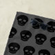 Dieses coole Design hat ein schwarzes Schädelmuster auf grau, mit einem individuelle Name in weißem Schriftart.