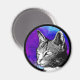 Mit diesem niedlichen Space Cat Magneten können Sie Ihrem Kühlschrank oder Ihrem Schulfach etwas Flair hinzufügen! Es hat einen lila und blauen Hintergrund mit einem großen schwarz-weißen Katzengesicht im Vordergrund. Ideal für einen Katzenliebhaber oder einen Liebhaber der Dinge albern und lustig!