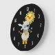 Cooler Lama und lächelnde Kawaii Sun Große Wanduhr