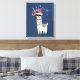 Cooler Llama in Weihnachtsmannmütze mit Schneefloc Leinwanddruck