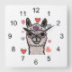 Cooler Llama mit Herzbrille Quadratische Wanduhr