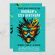 Feiern Sie stilvoll mit dieser lebendigen farbenfrohen Paintball Geburtstagsparty Einladung! Mit einer kühnen Paintball-Maske und dynamischen Spritzern vor einem hellen türkisfarbenen Hintergrund ist dieses Design ein Set für ein actionreiches Fest. Auf der Rückseite der Einladung wird das spielerische Thema mit mehr Spritzern in einem entsprechend türkisfarbenen Hintergrund fortgesetzt. Personalisieren Sie den Text so, dass er Ihren Party-Details entspricht und schaffen Sie eine wirklich einzigartige Einladung. Erhältlich in unserem Shop mit verschiedenen Hintergrundfarben wie grün, gelb, orange und lila. Sie können es auch in einem digitalen Format zum sofortigen Download erwerben, sodass es einfach zu versenden ist!