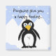 Ein cool aussehender Pinguin mit einem glücklichen Sprichwort. Schwarz-Weiß-Vogel mit blauen Augen und einem orangefarbenen Schnabel!
