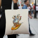 Tote Tasche mit einem coolen Eisbär in Sonnenbrille und hawaiianischem Shirt, abkühlen auf einem Surfbrett mit handgehaltenem Ventilator und kaltes Getränk. Inspiriert von der Mini-Hitzewelle, die wir in dieser Woche in Großbritannien haben.