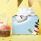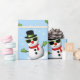 Niedlich festliche Wintergeburtstag feiert blaues Winterschneemann-Papier für Kinder. Illustration eines coolen Schneemanns mit grüner Sonnenbrille und Handschuhen, rotem Schal und schwarzem Top-Hut.