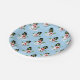 Coole Schneemann Weihnachts Winterurlaub Muster Papier Teller. Personalisieren Sie Party versorgt Niedlich festliche Wintergeburtstage mit blauen Winterschneemodellen für Kinder. Illustration eines coolen Schneemanns mit grüner Sonnenbrille und Handschuhen, rotem Schal und schwarzem Top-Hut.