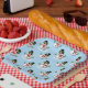 Coole Schneemann Weihnachts Winterurlaub Muster Papier Teller. Personalisieren Sie Party versorgt Niedlich festliche Wintergeburtstage mit blauen Winterschneemodellen für Kinder. Illustration eines coolen Schneemanns mit grüner Sonnenbrille und Handschuhen, rotem Schal und schwarzem Top-Hut.