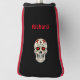 Auf dem Putter-Cover ist ein Zuckerschädel mit roten Herzen in den Augen, Blume und einem Kreuz auf der Stirn zu sehen. Personalisieren Sie den Namen. Passen Sie die schwarze Hintergrundfarbe und die rote Rohrleitung an. Cool, elegant, geschmackvoll, gotisch. Maskulinarisches Design für Golfer und Sportler, zum Geburtstag oder Vatertag. Bestellen Sie noch heute ein Set.