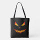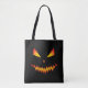 Halloween ganz im Druck Tasche mit Coolen und beängstigenden Jack O'Lantern Gesicht Halloween. ©PLdesign Evil schaut orange und gelb brennend Pumpkin Gesicht. Sie können die Farbe der schwarzen Tote Tasche anpassen!