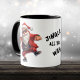 Cooler Hipster Santa Claus Jingles den ganzen Weg auf dieser lustigen Ferien-Tasse. Das Bild wird zweimal auf der Tasse gedruckt, dazwischen schwarzer Text.