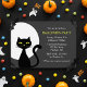 Einladungen zum Halloween-Party mit einer niedlichen schwarzen Katze und Vollmond.