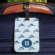 Cooles marineblaues Schwertfisch-Muster auf hellblauen mit Monogramm Gepäckanhänger.