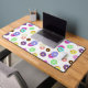 Coole und lustige Donuts Muster Desk Mat. Personalisieren Sie coolen Arbeitsbereich für Büro, Raum, Arbeit, Werkstatt, Spielzimmer... Muster hergestellt aus Illustrationen von vielen köstlichen Backen Donuts mit allen Arten von Farbverglasung, Schokolade, Vanille und alle Farben, blau, gelb, rosa, lila, cyan.