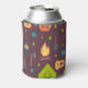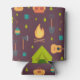 Kann Kühler mit einem niedlichen Camping-Muster. Camping-Themen wie ein orangefarbenes Lagerfeuer, ein grünes Zelt, eine akustische Gitarre und andere Naturelemente wie Bäume, Blätter, aber auch ein Rucksack, Schaufel und Kantine. Coole Outdoorsie.
