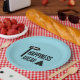 Einfaches Text-Grafik-Design mit einem kleinen Zelt, einem Zeltschild und einem Text-Sprichwort: Glück voraus.