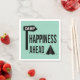 Einfaches Text-Grafik-Design mit einem kleinen Zelt, einem Zeltschild und einem Text-Sprichwort: Glück voraus.